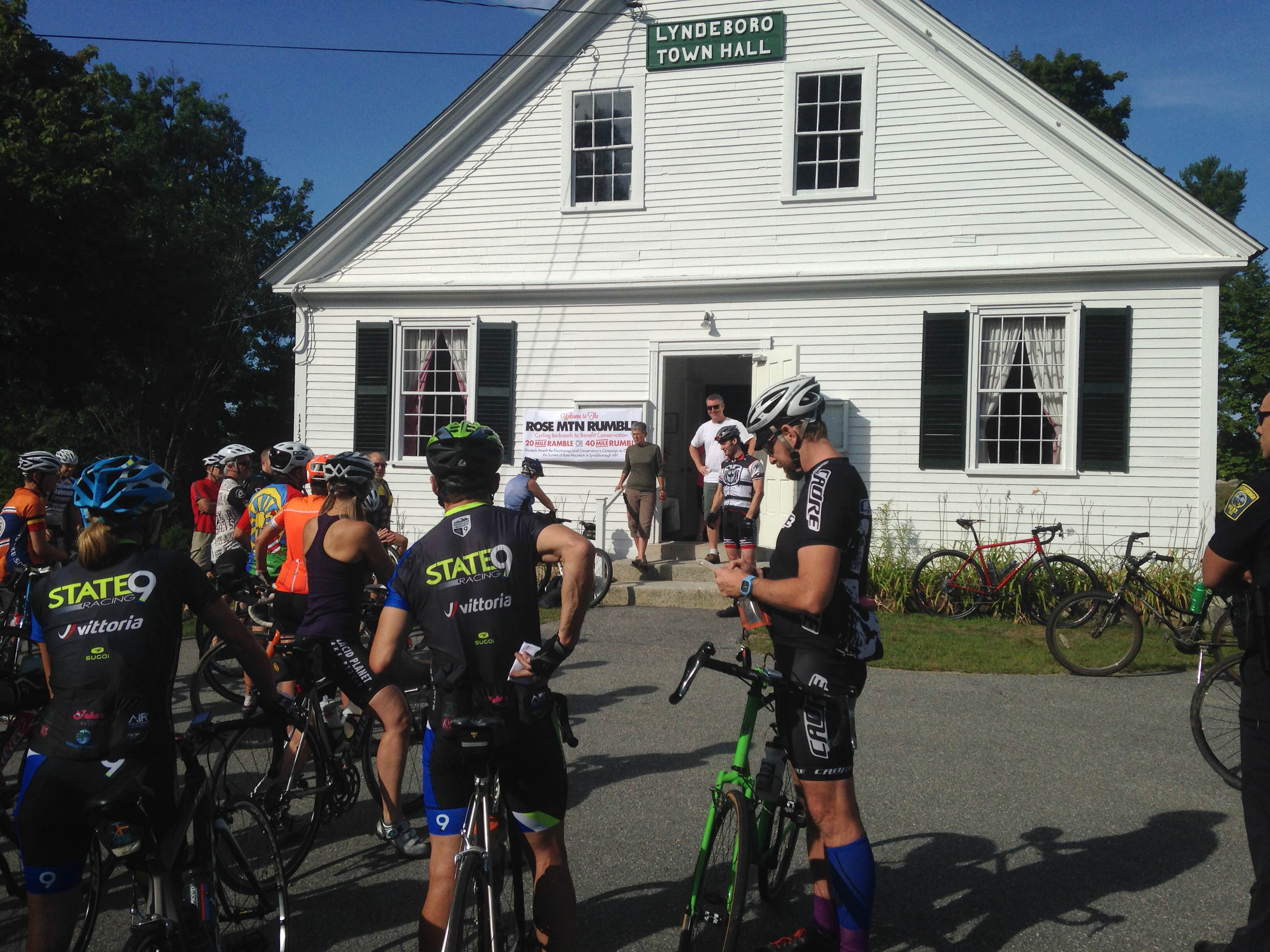 Kristofer Henry of 44 Bikes leads riders out from Lyndeborough’s Historic Town Center